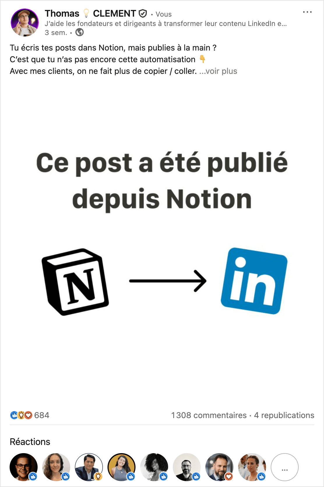 Nous installons un système clé-en-main qui transforme votre contenu LinkedIn en un levier d’acquisition client.